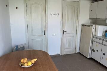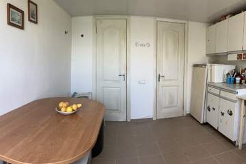 На первом этаже- кухня-столовая, санузел и душ.