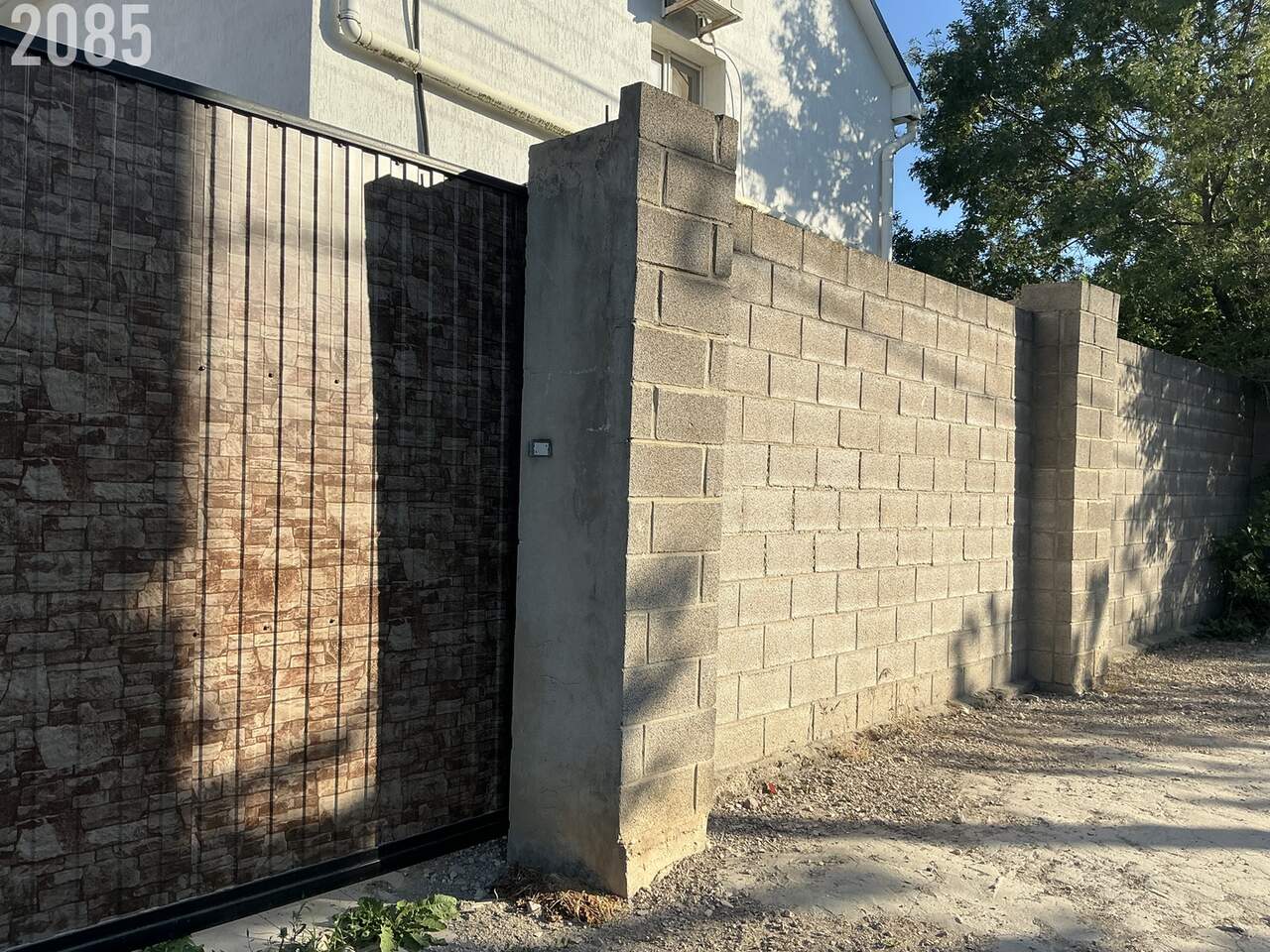 Двор выложен плиткой, плодовые деревья растут на участке.