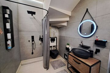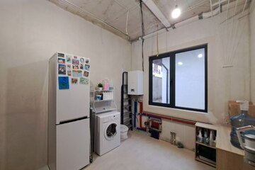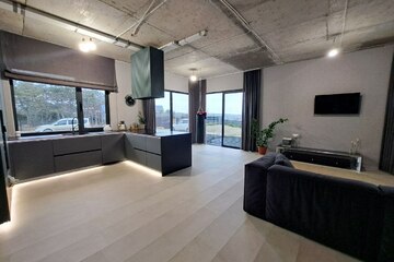 На первом этаже - кухня-столовая, спальня, санузел и душ, котельная, терасса для отдыха .