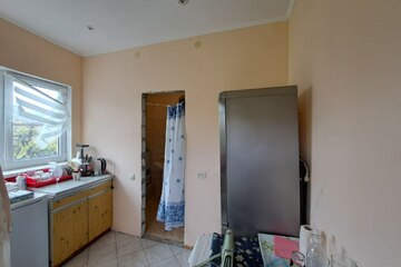 На первом этаже- кухня, комната, санузел и душ совмещенные.