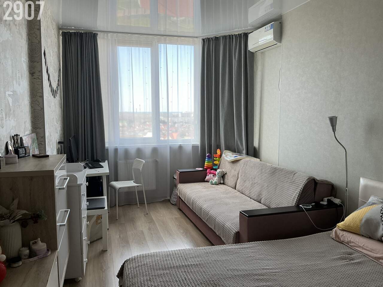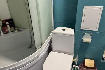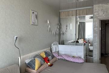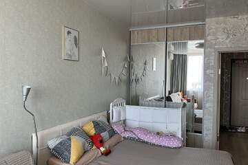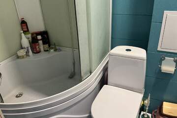 Комната площадью 18квм, кухня- 15квм, санузел и душевая кабина совмещенные, лоджия застеклена, гардеробная.
