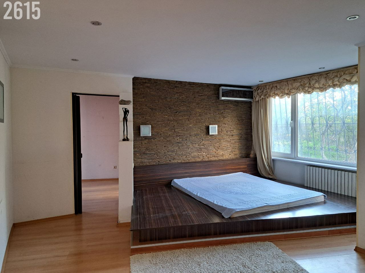 Три комнаты, кухня, санузел и ванна совмещенные, гардеробная.